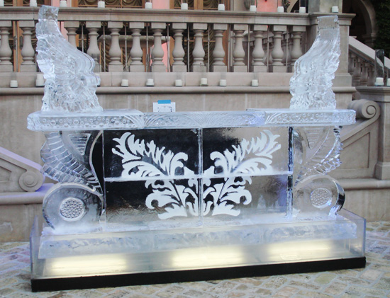 Ice Bulb can customize ice bars in various sizes and designs. Most include a corporate logo and the addition of drink luges, bottle chillers and more.